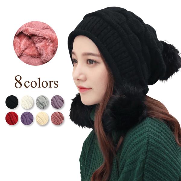 ニット帽 レディース おしゃれ 耳あて ポンポン ボンボン 秋冬 防寒帽子 可愛い 暖かい 厚手 大きめ 無地 アクリル 女の子 大人 キャップ ゆったり 裏起毛 水着ストア 通販 Paypayモール